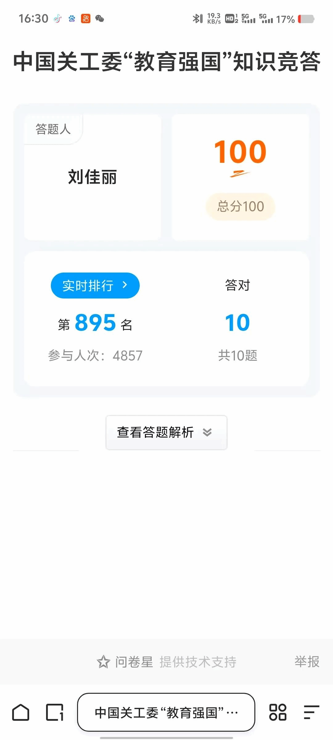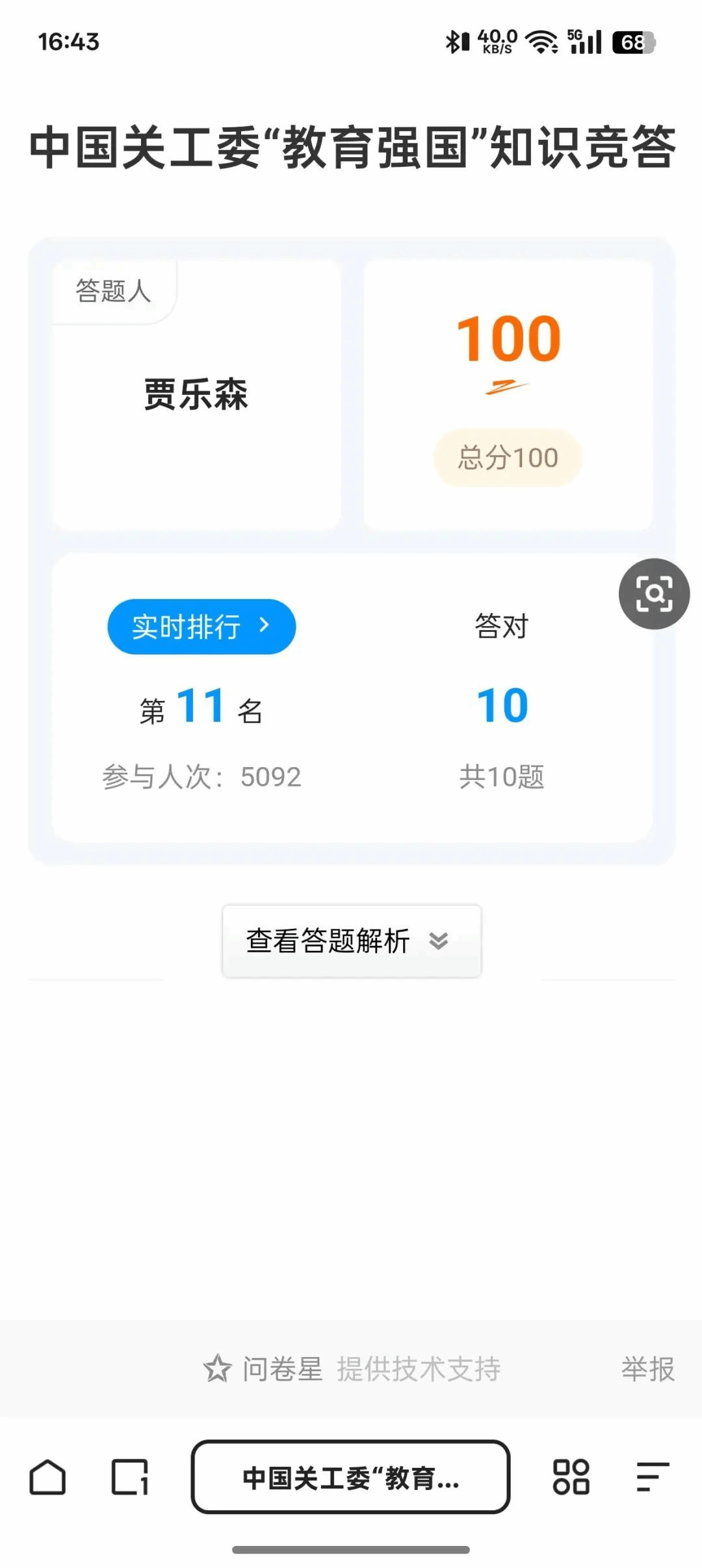 公司员工答题截图