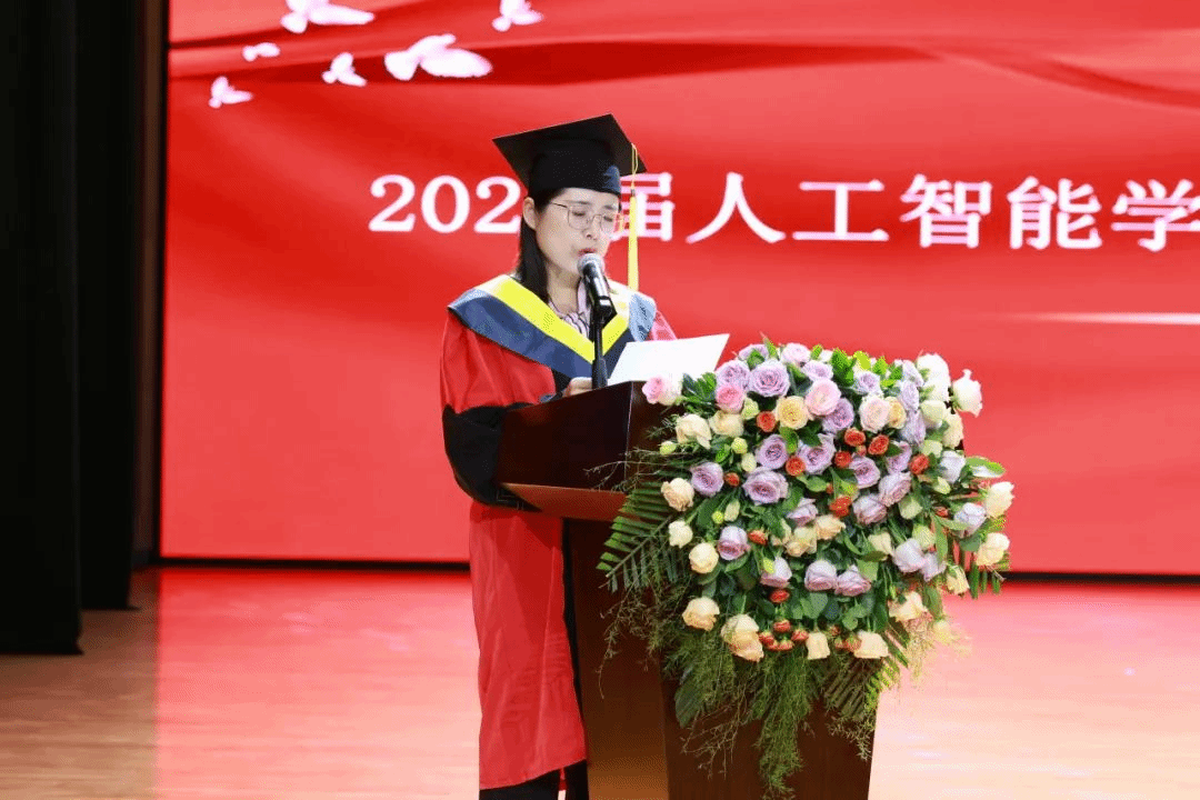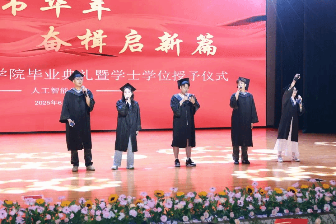 在这场充满意义的毕业仪式里,师者的话语成为动人注脚。教师代表李震老师,以诗意发言传递期许:“同学们,你们恰似即将奔赴广阔天地的AI工程师,母校为你们编写的‘初心代码’,早已悄然植入人生底层逻辑。”他勉励大家在技术浪潮迭代中,莫忘“修德凝道”的精神底色,让专业成长与品格养成并行不悖。辅导员代表樊旭恒老师,则以“家长式”叮嘱触动全场:“要记得按时吃饭,别总为逐梦亏待身体;更要记得,无论何时遇到困难,给母校打个电话,我们永远是你们最坚实的‘技术支持’。”这些话语,褪去华丽,满是朴素牵挂,成为毕业生未来路上难忘的心灵锚点。