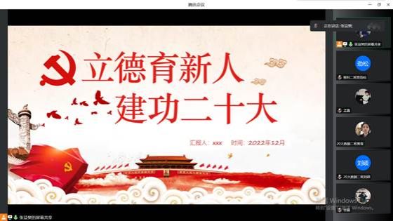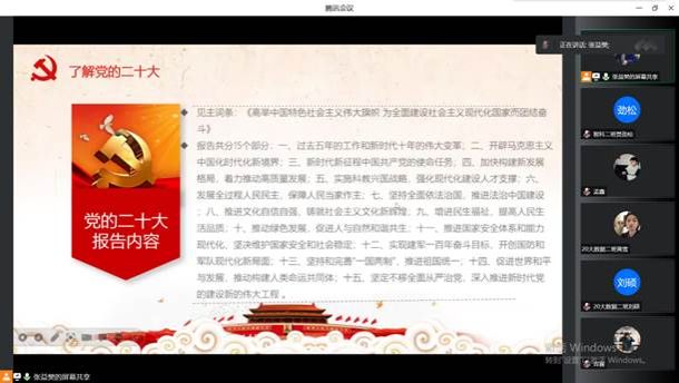 今日,由孟鑫老师主讲的“立德育人,建功二十大”主题宣讲活动在线上如期举行。此次宣讲活动孟鑫老师主要围绕党的二十大会议重点和新时代新征程中国共产党的使命任务做出讲解。