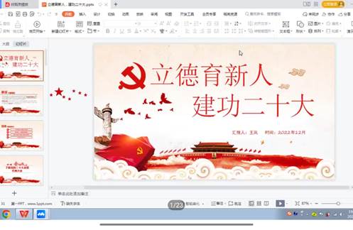 为深入学习宣传贯彻党的二十大精神,引导青年将思想和行动统一到党的二十大精神上来,团结带领青年坚定不移跟党走、建功新时代、奋进新征程,积极响应公司下发的《关于开展“立德育新人,建功二十大”辅导员宣讲活动的通知》内容,辅导员王凤老师在线上开展本次“立德育新人,建功二十大”学习教育宣讲活动。