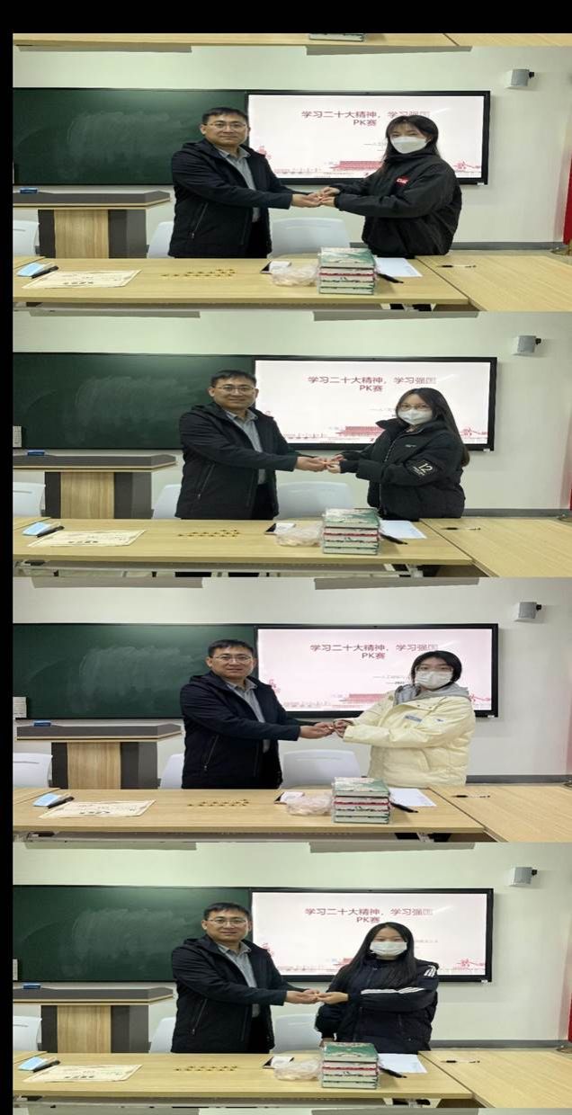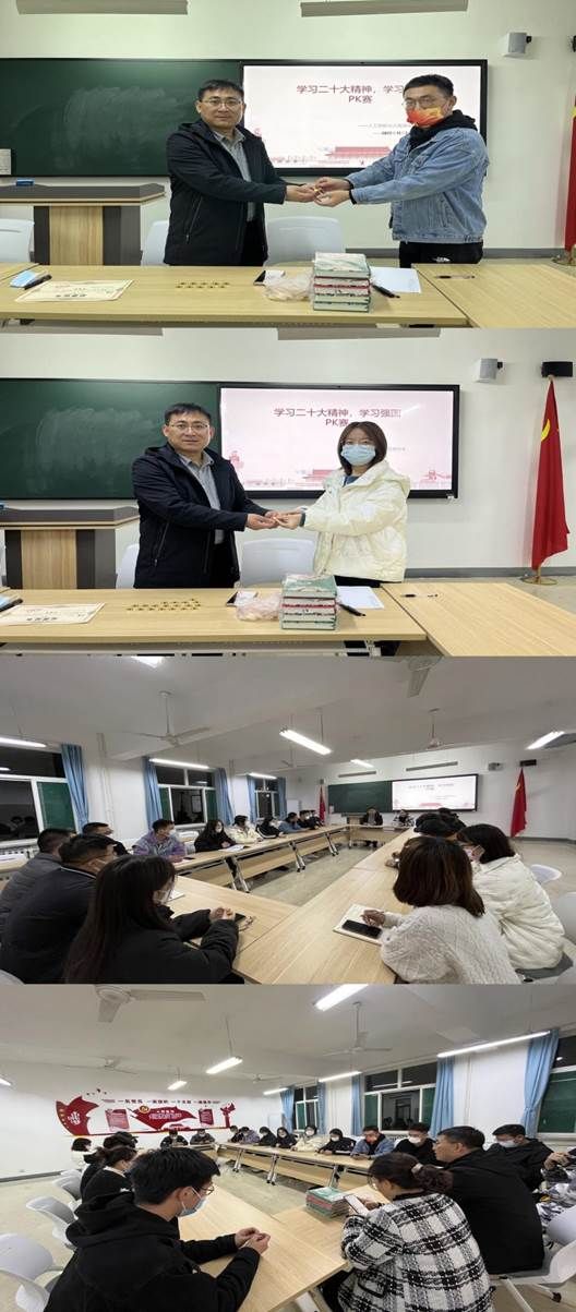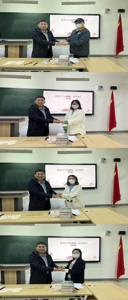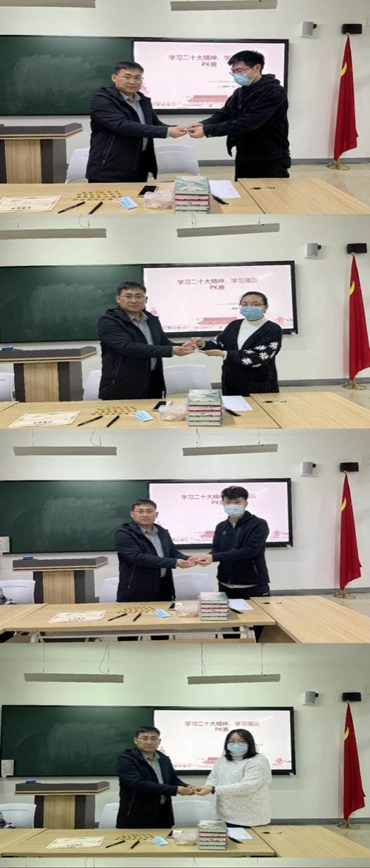 本次学习强国PK赛,由人工智能与大数据公司党总支书记尹钧担任主持人,分教师党员和员工党员两支队伍参赛,每队十人。比赛分两轮进行,第一轮,自由PK,“学习强国”APP挑战答题赛。10分钟内,师生各队选出5名答题正确数量多者,进行第二轮PK。第二轮为狭路相逢,“学习强国”APP组队挑战答题赛,教师党员与员工党员两两组队进行学习强国答题比拼,最终学习强国答题分数高的五人获胜。