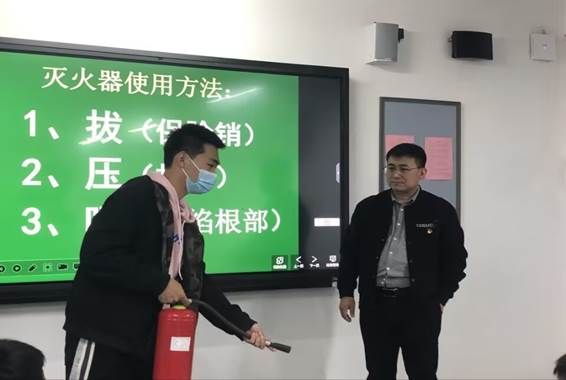 会议伊始,尹经理向员工们讲解了消防安全知识,根据实际案例及近年火灾相关数据强调了消防安全的重要性。尹经理的讲解深入浅出,内容涉及火灾发生的原因、怎样预防火灾、火场逃生基本知识、灭火器的正确使用方法等方面,同时尹经理亲自动手示范灭火器的使用方法,并邀请员工上台亲身感受,体验学习。随后,公司自律委副主席亢佳轩针对宿舍卫生安全检查情况做报告,宿舍卫生安全良好,希望员工们继续保持。而后,亢佳轩强调了消防、住宿等安全问题及应对措施,并表示公司将持续关注宿舍楼内消防安全问题,时刻关注校园安全。