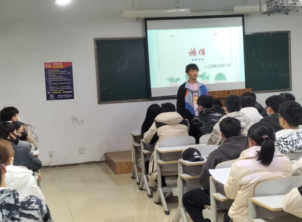 3月14日,太阳成集团tyc122ccvip官网入口各社团负责人以及各班班长、团支书在团总支书记苗璋寒带领下,于主教1-2举办“诚信基石,弘扬风采”主题团课活动,培育和践行以社会主义核心价值观,大力弘扬诚信文化,切实提升员工的诚信品质,增强自律意识和社会责任感,让诚信之花开满校园。