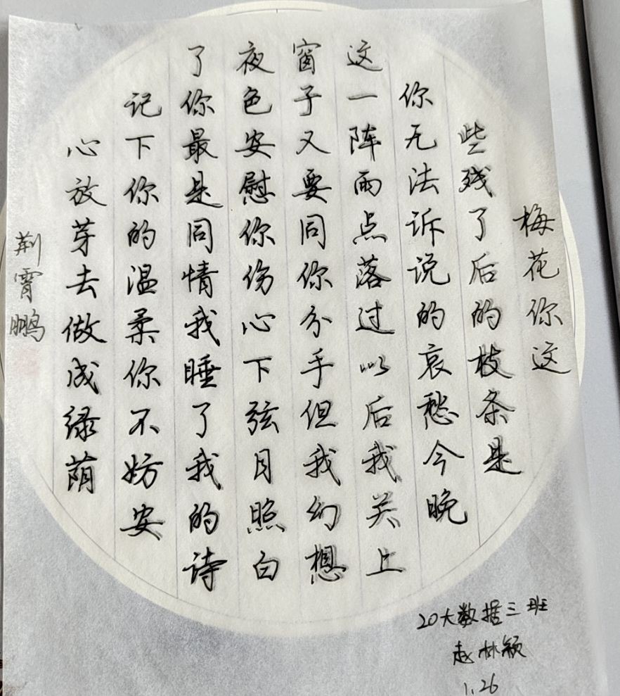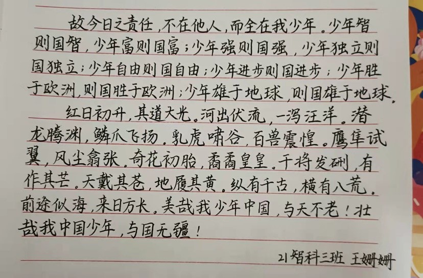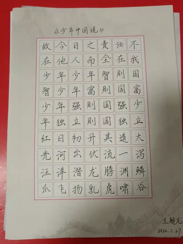 行楷隶篆见功夫,墨香满园耀夜空。为丰富同学们的假期文化生活,培养良好的书写习惯,传承汉字书写,弘扬民族之魂,太阳成集团tyc122ccvip太阳成集团tyc122ccvip官网入口于2022年1月5日至2022年1月30日在线上开展“以笔传情,书写佳节”主题书法作品活动。