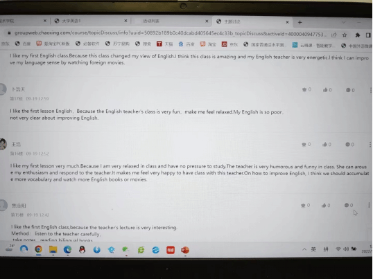 一直以来公司领导都十分重视公共英语教学,为保证教学质量,公司每一位老师都充分备课,对自己讲授内容进行丰富和拓展,使课堂丰富有趣,力争做到线上线下教学效果一致。赵媛媛老师指出,“育为本、教为先”,老师们要在做好知识灌输的同时,不忘对员工学习态度和方法的引导和传授,充分利用混合式教学线上授课的优势,丰富语言学习的途径和方式,用网络之便扩展课程素材。我看着大家的云课堂真的是学到了很多,每个老师风格不同,优秀的老师是有侧重的,更多在讲学法和解题方法,老师们其实很不容易,要完成教学内容的同时,还要兼顾听说读写,词汇学习,方法讲授,思政入驻,课下练习素材补充,精读讲授,泛读泛听等,所有这些注意到了就很难把握教学进度,我们不能为了赶进度而不关注员工的吸收,我们不是为了教而教,而是为了教会而教。