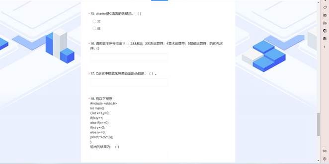 本次活动共计134名优秀的员工代表参加,采取线上答题的方式,参赛员工在规定时间内参加比赛,并用所学知识在限定时间内根据题目完成准确编程,完成编程后便可以交卷离场。最后工作人员会根据员工们对基础知识的掌握程度和所编写程序运行结果的正确率评选出一二三等奖和参与奖。此次出题难度适中,个别具有挑战性,员工们总体上都获取了十分优异的成绩,这离不开平日里对学习的认真态度,我们也不难看得出员工们对C语言浓厚的学习兴趣。