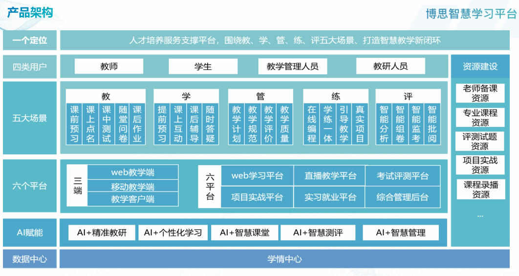 公司紧密围绕公司规划及应用型人才培养定位,通过建设信息化教学服务平台(科大讯飞博思智慧学习平台),持续推进深入教学模式、教学考核评价和资源体系改革,真正落实以学习者为中心的个性化学习体系和实现“以学为主”的教学模式转变。